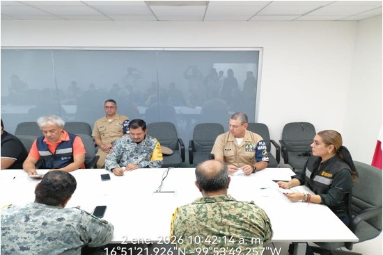 Cabe mencionar, que se desplegó personal de la Brigada de Respuesta ante Emergencias (BRE) de este Mando Naval, arribando al municipio de San Marcos, Gro., donde se sostuvo una reunión de coordinación con el Presidente Municipal y diversas autoridades civiles y militares, con el propósito de evaluar la situación, identificar posibles afectaciones y determinar las acciones y apoyos necesarios para brindar auxilio oportuno a la población.