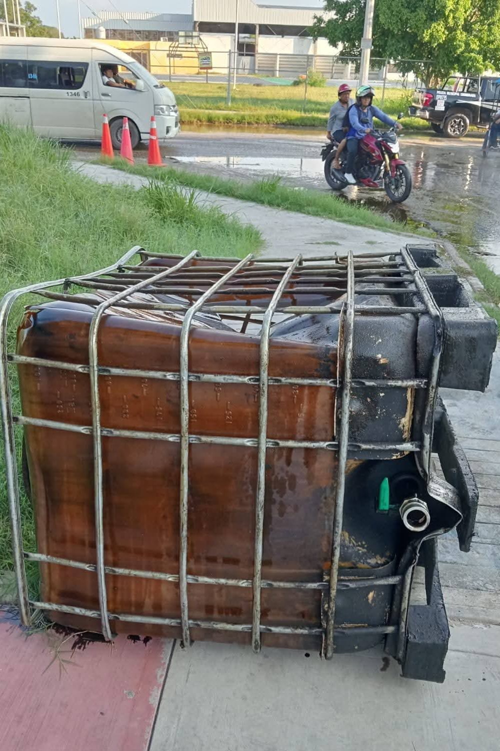 De acuerdo con testigos que estaban en la zona, la camioneta avanzaba por ahí al parecer con exceso de velocidad, por lo que se le cayó un enorme contenedor con 800 litros de diesel, el cual se esparció por todo el asfalto. Acto seguido, el guiador aceleró y escapó, por lo que no se descarta que se tratara de combustible ilegal.