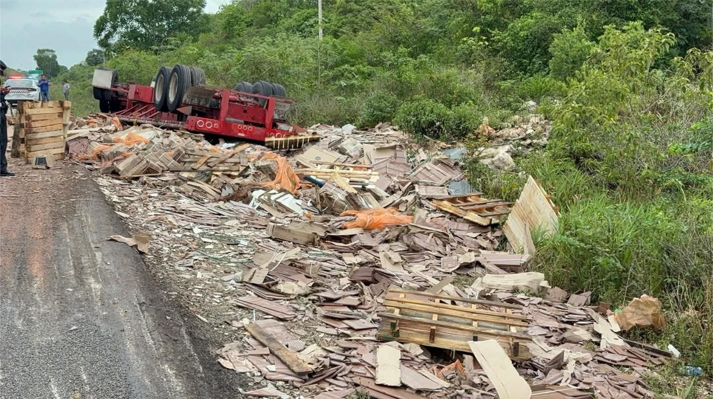 • Según testigos y la información preliminar, tras el accidente, el tractocamión que arrastraba ambos remolques no se detuvo y continuó su marcha con el segundo remolque, dejando en el sitio tanto la plataforma volcada como la carga de vitropiso