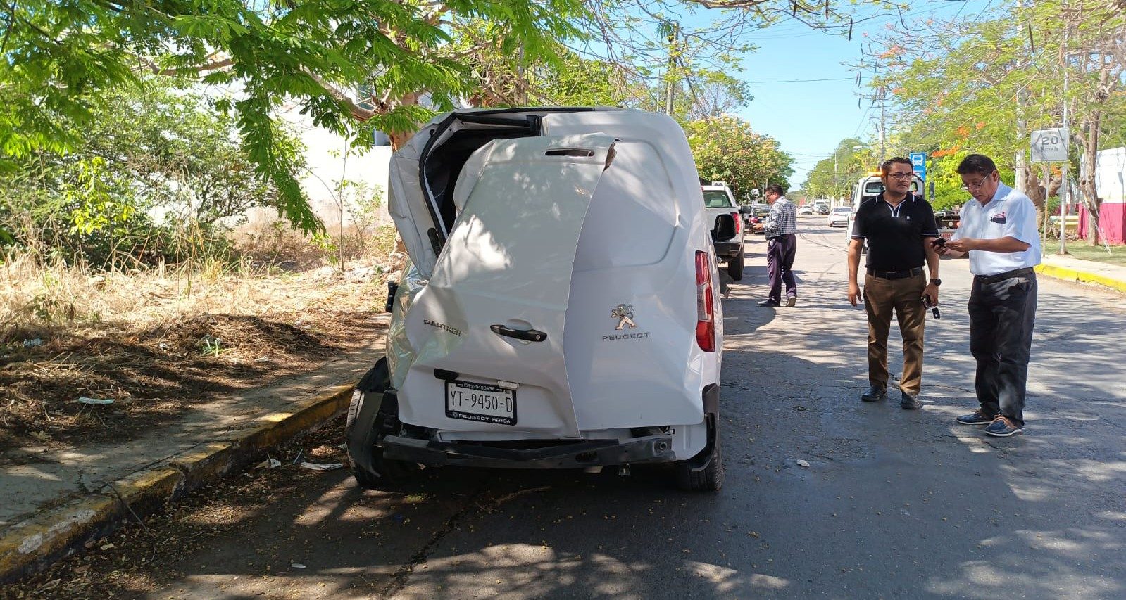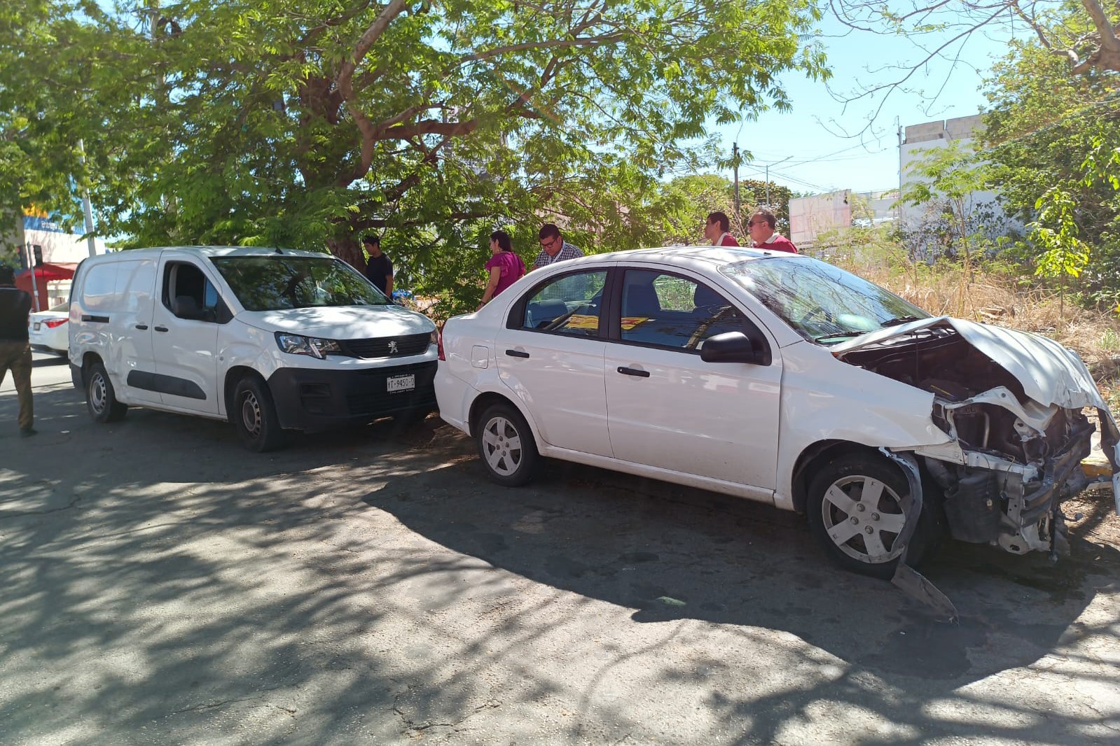 MÉRIDA, YUC. a 9 de junio.- Un Aveo y una camioneta Peugeot se dieron tremendo encontronazo en la calle 43 con 32 de la colonia Pinzones, frente a las instalaciones del CICY, rumbo a Francisco de Montejo, y ambos guiadores dijeron tener la luz verde del semáforo.