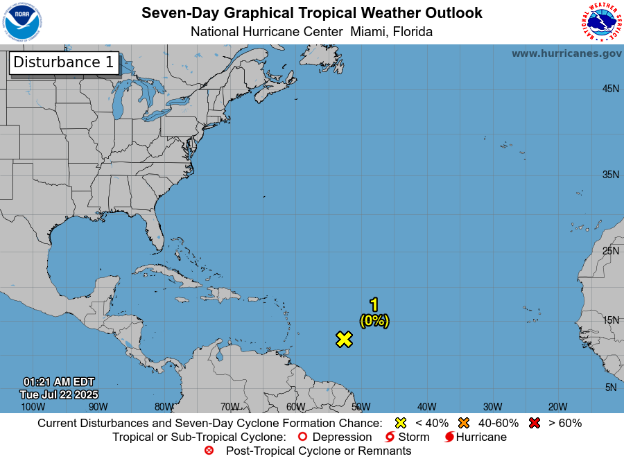 CHETUMAL, 22 de julio.- La zona de baja presión que se desarrolló en el océano Atlántico central terminó por perder fuerza y finalmente se disipó en las primeras horas del martes, conforme a los pronósticos que indicaron que no encontraría condiciones para un fortalecimiento.