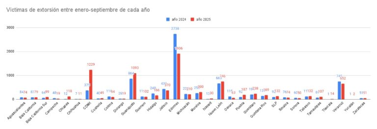 El último reporte de seguridad del gobierno federal reconoció que la extorsión ha crecido 20.8 % entre enero y septiembre de 2025 frente a los mismos meses de 2019. Además, el SESNSP reportó un incremento en los casos de extorsión en 17 estados.