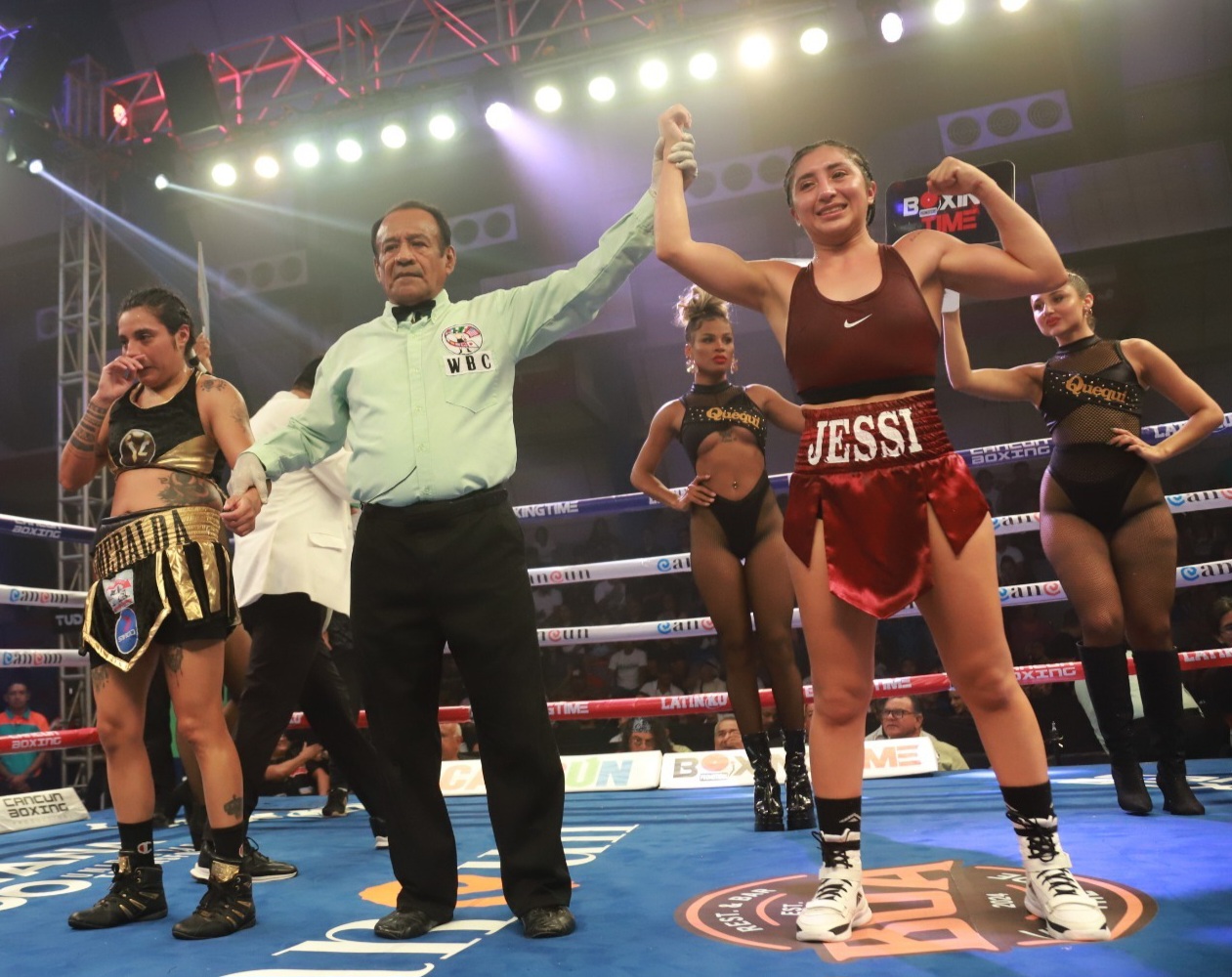 En lo que fue la contienda femenil de la noche, la yucateca Jessica “Tanquecita” Basulto se impuso tras ocho asaltos por decisión unánime a la capitalina Esmeralda “Flaquita” Torres, manteniendo su récord invicto en 13 pleitos.