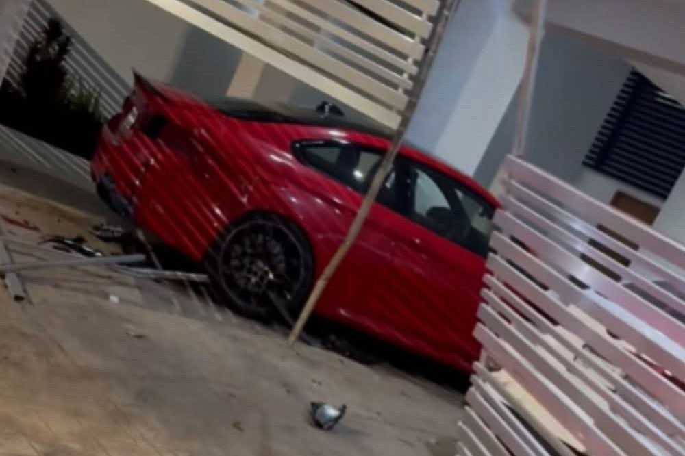 El fuerte estruendo despertó a la familia durante la madrugada, cuando un auto azul, por causas aún desconocidas, perdió el control y se estrelló contra la herrería de la entrada, destruyéndola por completo.