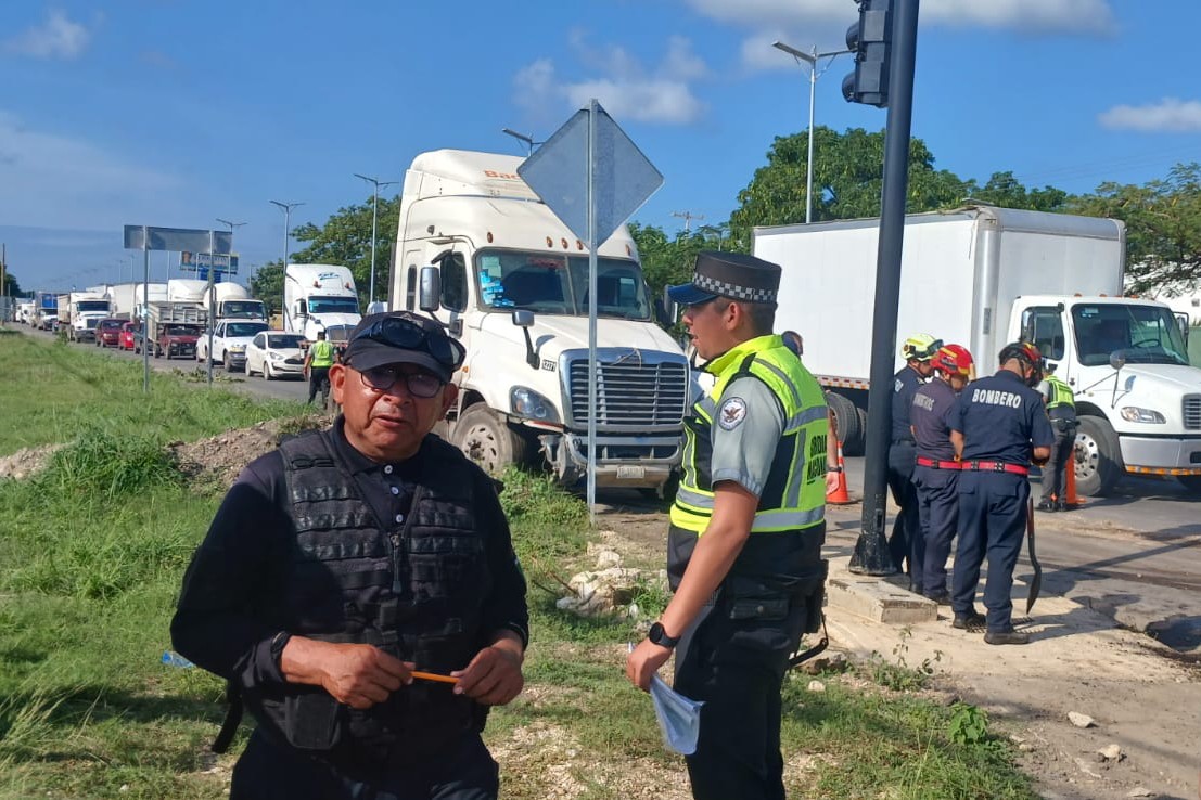 Al lugar arribaron unidades de la policía municipal coordinada de Umán. Cuyos elementos procedieron a abanderar el área para prevenir posibles derrapes por el viscoso combustible. Una unidad del cuerpo de bomberos, también llegó al lugar, procedieron a echarle aserrín al Diésel y así evitar cualquier accidente.