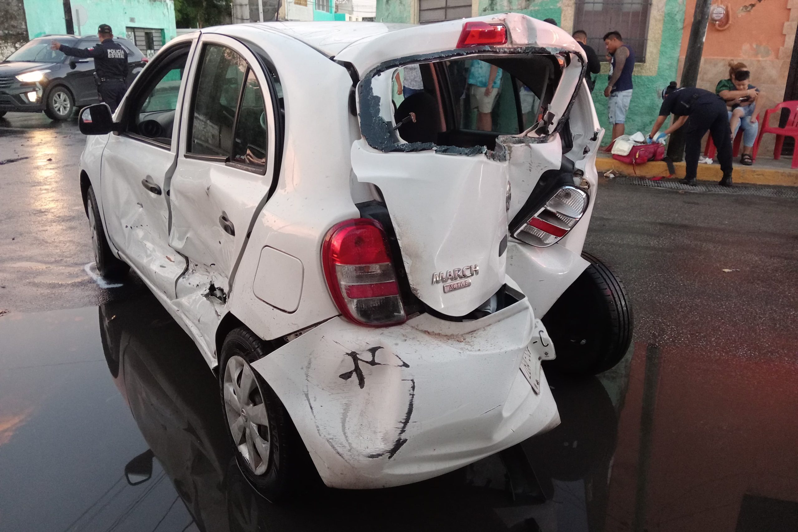 MÉRIDA, YUC.- 11 de junio.- Un vehículo mal estacionado evitó que el guiador de un coche viera la señal de alto en la calle 52, esquina cono 77 de la ciudad de Mérida, y fue de esa forma como se estrelló contra la parte trasera de un auto March, dejando saldo de fuertes daños materiales y un menor lesionado.