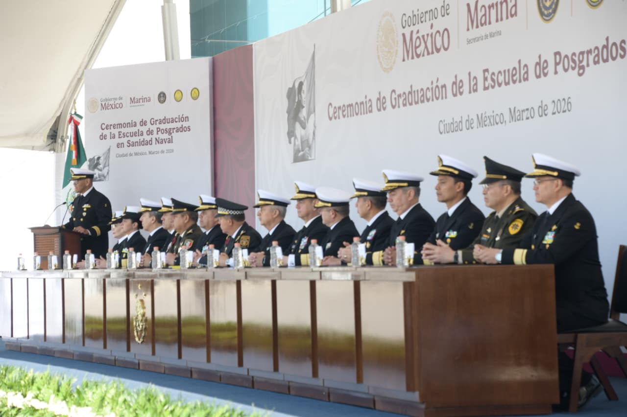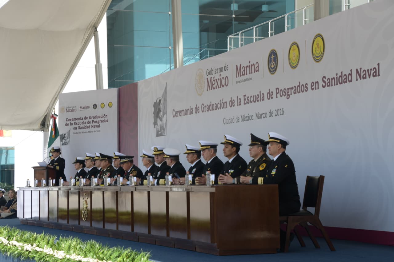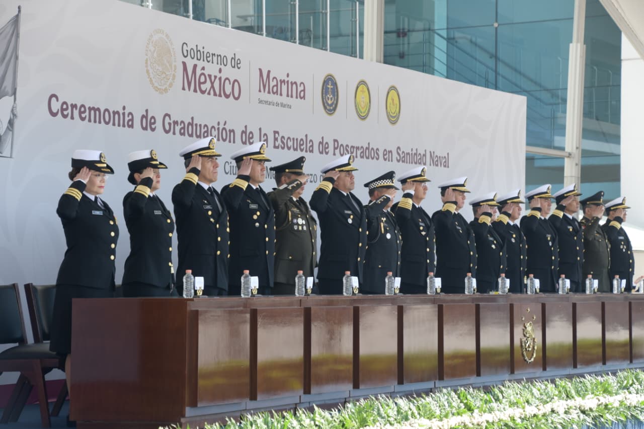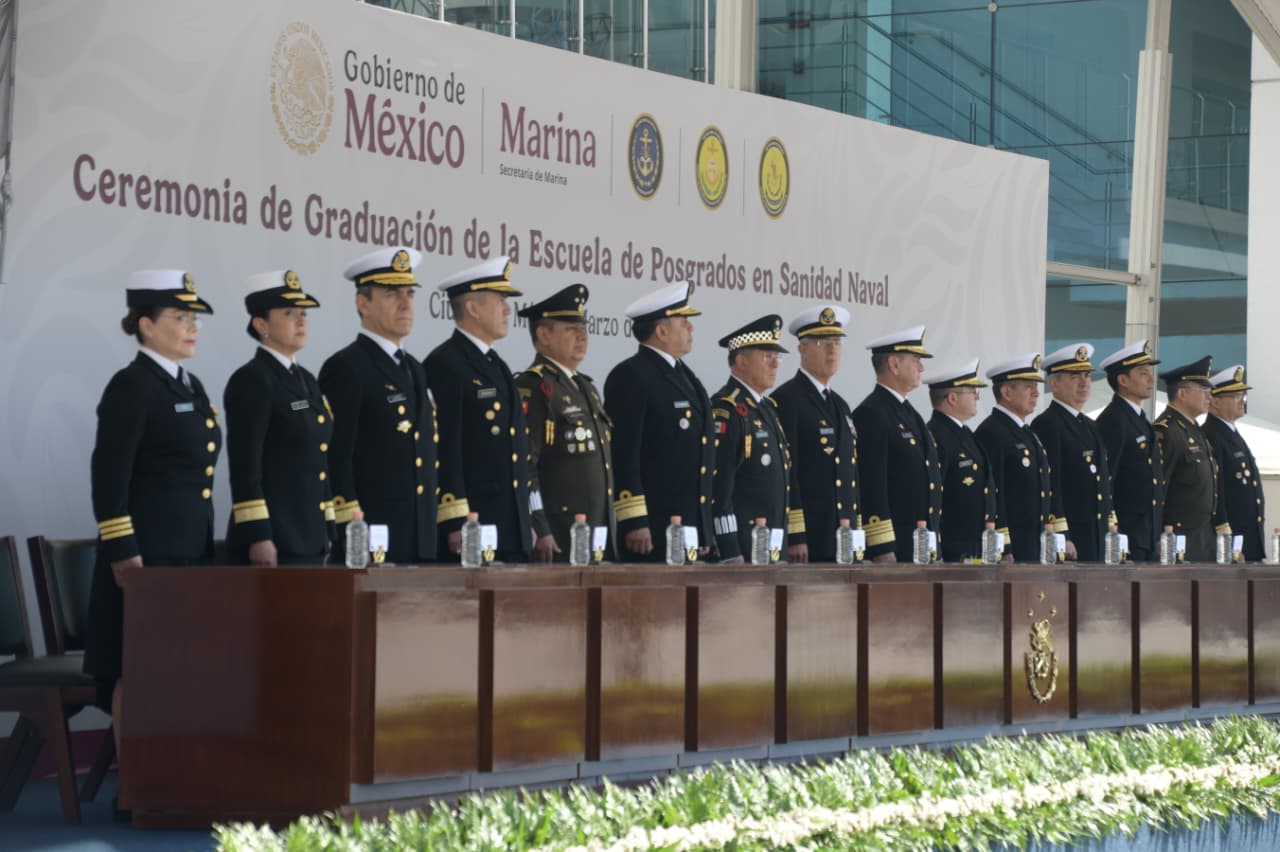Por su parte, el Almirante Francisco Guillermo Escamilla Cázares, Oficial Mayor de la Secretaría de Marina, aseguró que “el Servicio de Sanidad Naval tiene un papel determinante, ya que sum misión principal es garantizar que el personal en activo de la Marina se mantenga en óptimas condiciones de salud para cumplir con su deber en cualquier escenario donde la nación lo requiera”. “A partir de hoy, los nuevos egresados de la Escuela de Posgrados en Sanidad Naval engrosarán las filas de especialistas en salud en los establecimientos de Sanidad Naval, asumiendo con dignidad y excelencia cada misión encomendada. Su labor se enfocará en la protección de derechos fundamentales como la vida y la salud tanto física como mental”, agregó.