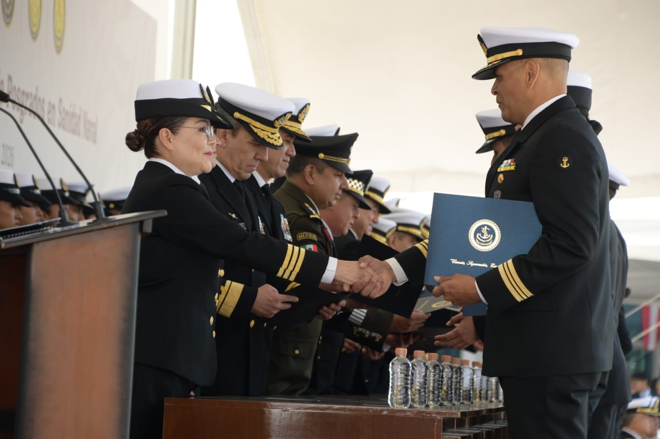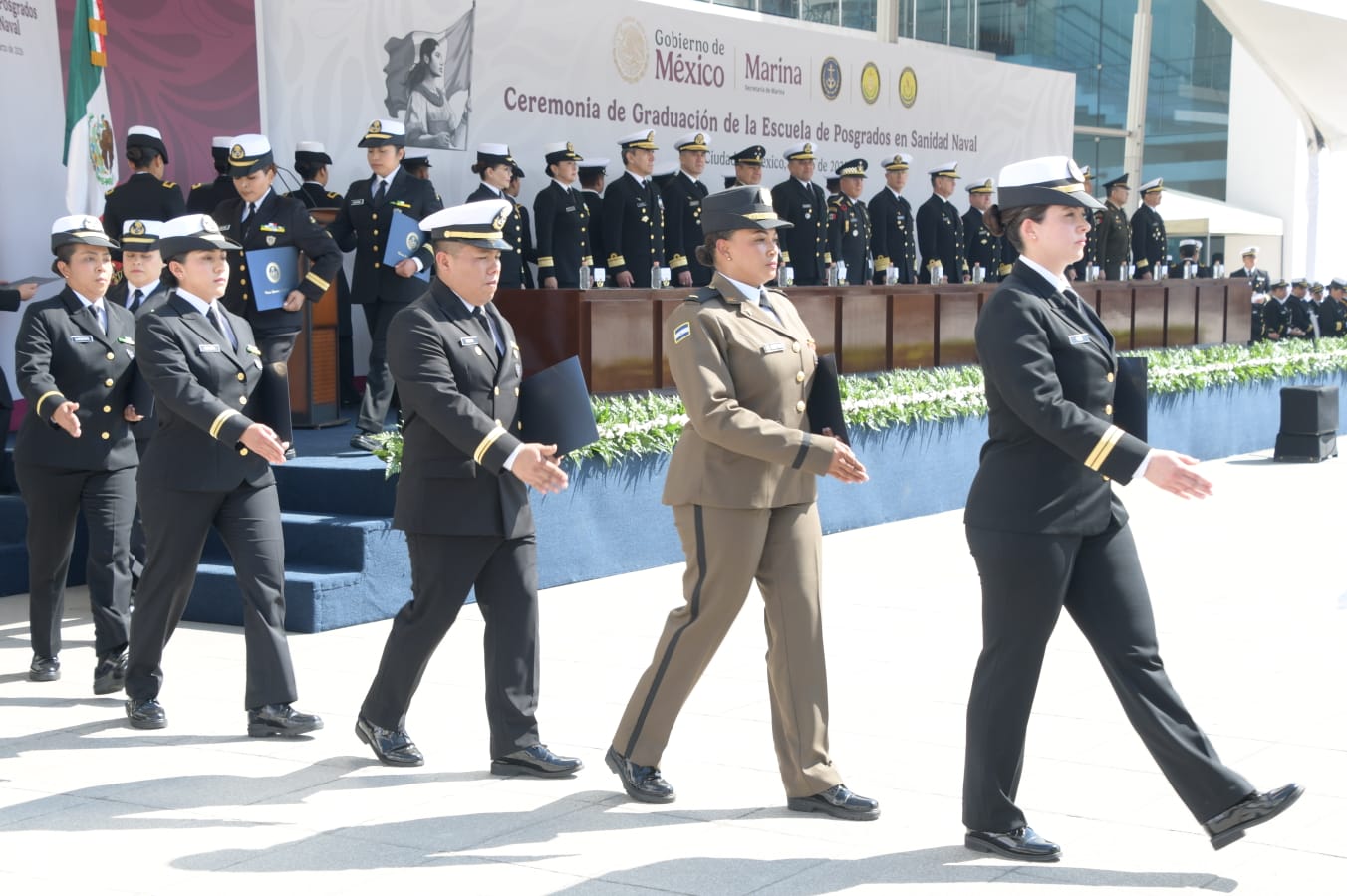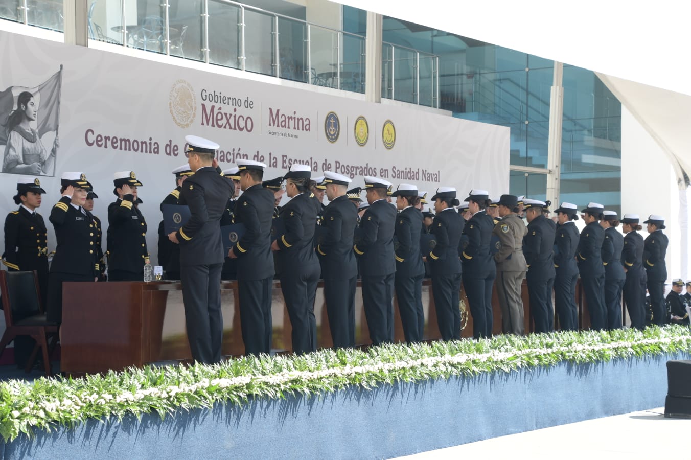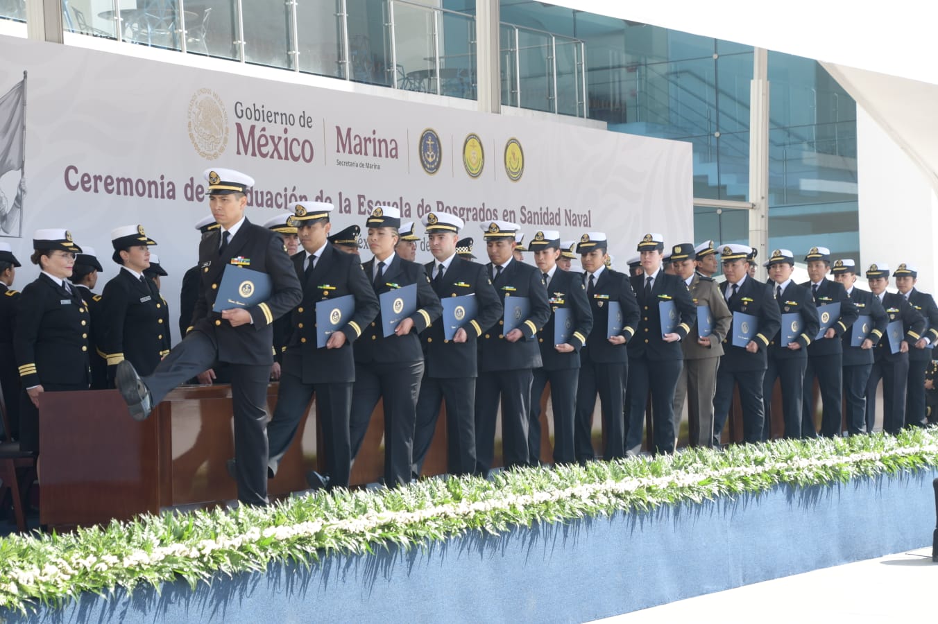 Citado evento fue presidido por el Almirante Francisco Guillermo Escamilla Cázares, Oficial Mayor de la Secretaría de Marina, en representación del Almirante Raymundo Pedro Morales Ángeles, Secretario de Marina y Alto Mando de la Armada de México, quien estuvo acompañado por el General Hernán Cortés Hernández, Oficial Mayor de la Defensa Nacional, así como por autoridades navales, mismas que hicieron entrega a los egresados del certificado correspondiente por concluir satisfactoriamente sus estudios.