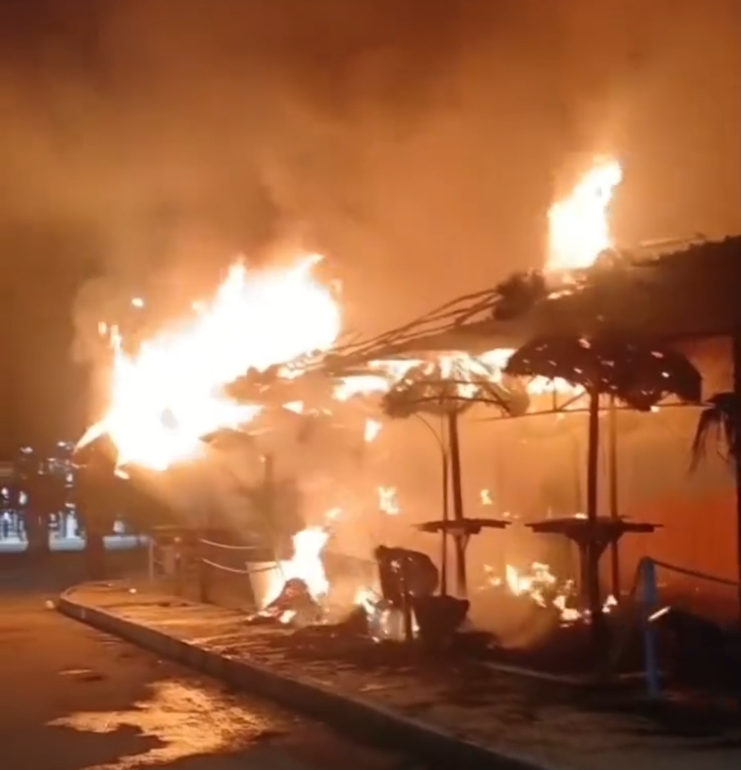 Además del edificio principal, también fueron consumidas una línea de paja de 15 metros lineales y nueve palapitas pequeñas que servían como mesas.