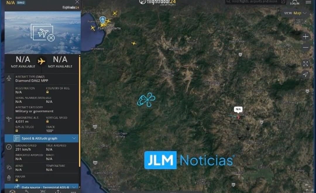 En tanto otro avión de inteligencia ISR Diamond DA62 MPP, perteneciente a la Fuerza Aérea de Estados Unidos, fue detectado cerca de Talpa de Allende, Jalisco, una zona señalada por la presencia de campamentos del CJNG y posible guarida de Nemesio Oseguera Cervantes. Tras patrullar el área, apagó su transpondedor, una práctica habitual en misiones de vigilancia militar.