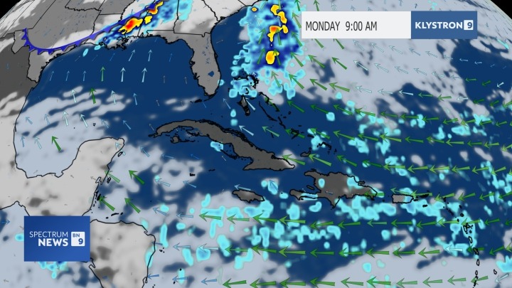 Los vientos del sureste de 27 a 36 kilómetros por hora.Olas de 4 a 6 pies en el canal de Yucatán, la temperatura del mar de 26 a 29°C.