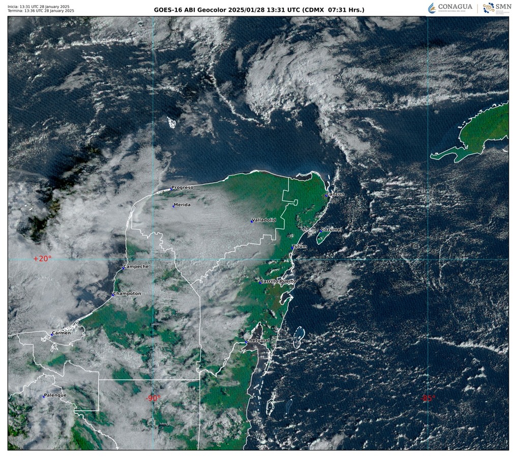 Con base en la sinopsis meteorológica para Quintana Roo, el ingreso de humedad del mar Caribe ocasionará cielo medio nublado a nublado en el transcurso del día, con chubascos de 5 a 25 mm en zonas del estado.