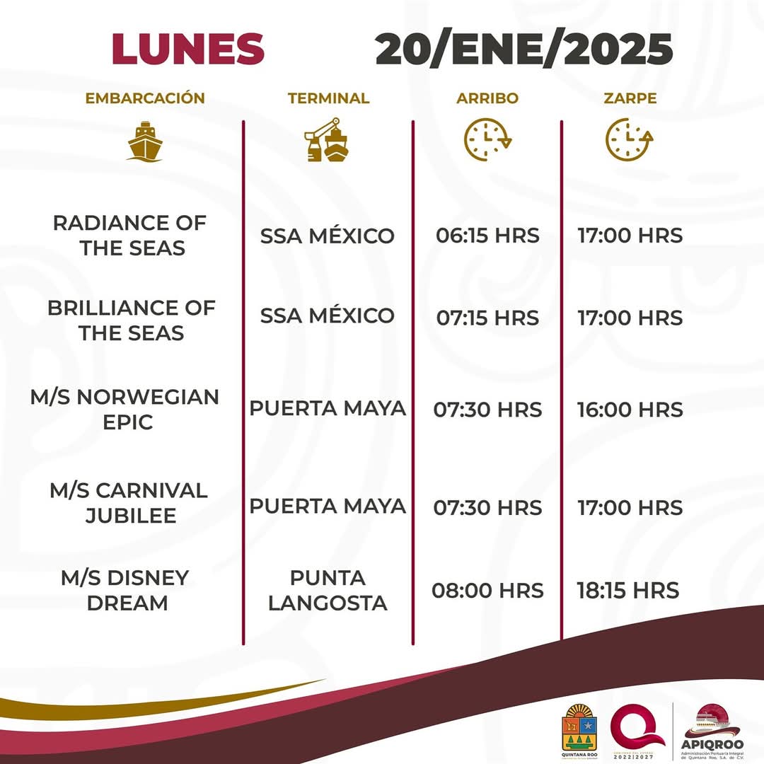 ► Llegarán 34 colosos de los mares con más de100 mil turistas la próxima semana