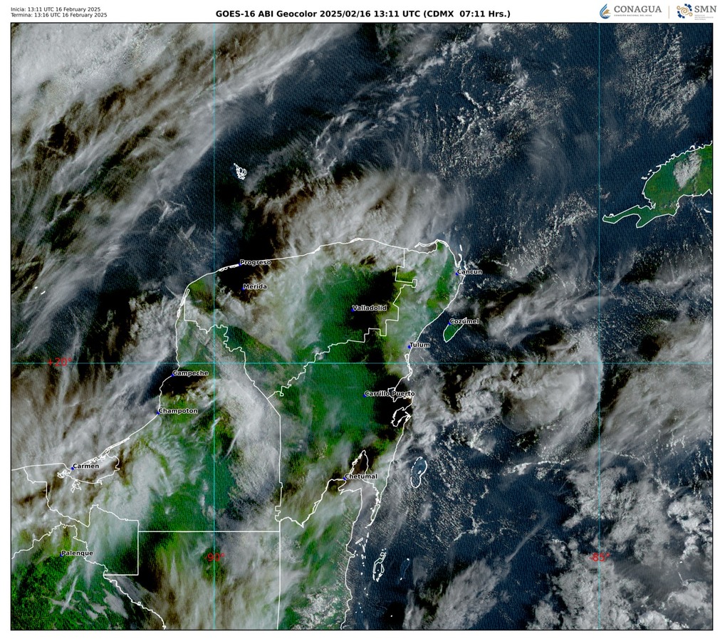 Condiciones que propiciarán en Quintana Roo cielo medio nublado a nublado, con intervalos de chubascos de 5 a 25 mm, acompañados de actividad eléctrica, más probables durante la tarde y noche.