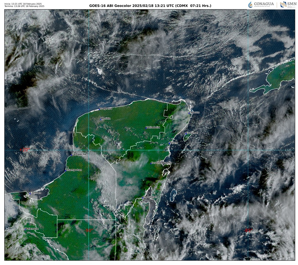 De manera general, un canal de baja presión sobre el sureste del territorio nacional, aunado con inestabilidad en niveles altos de la atmósfera y al ingreso de humedad procedente del mar Caribe, ocasionarán cielo medio nublado a nublado con intervalos de chubascos de 5 a 25 mm acompañados de actividad eléctrica en algunas zonas Quintana Roo.