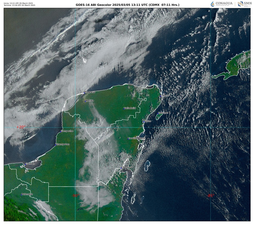 De manera general, el frente frío núm. 31 se extenderá sobre el oriente del golfo de México y la península de Yucatán; originará cielo medio nublado con intervalos de chubascos de 5 a 25 mm en zonas de Quintana Roo.