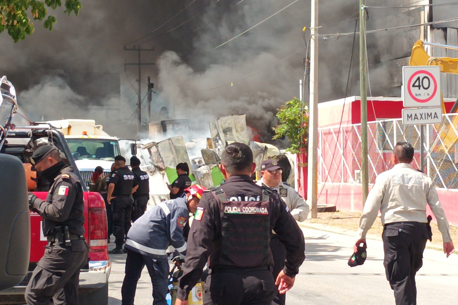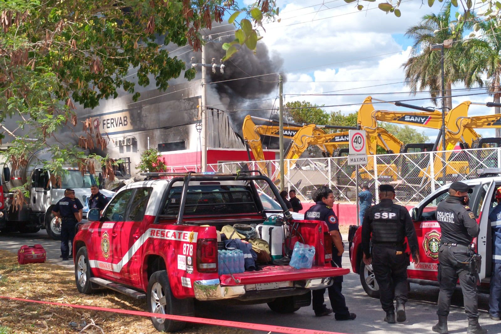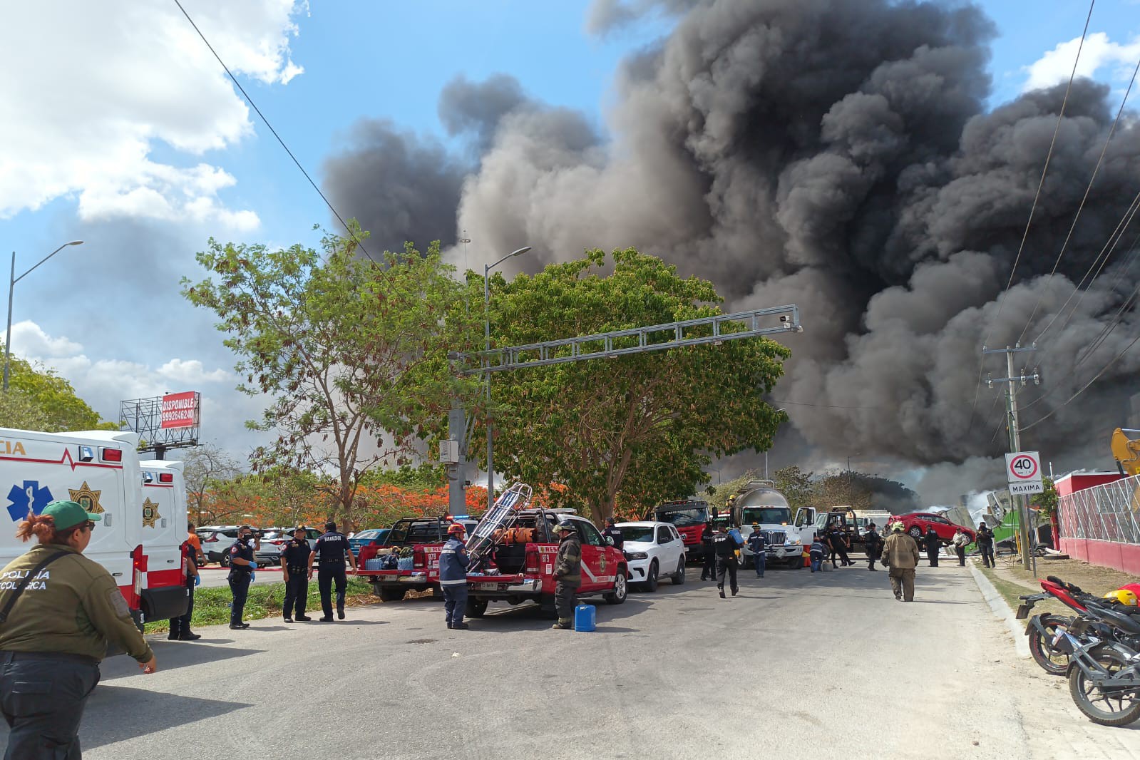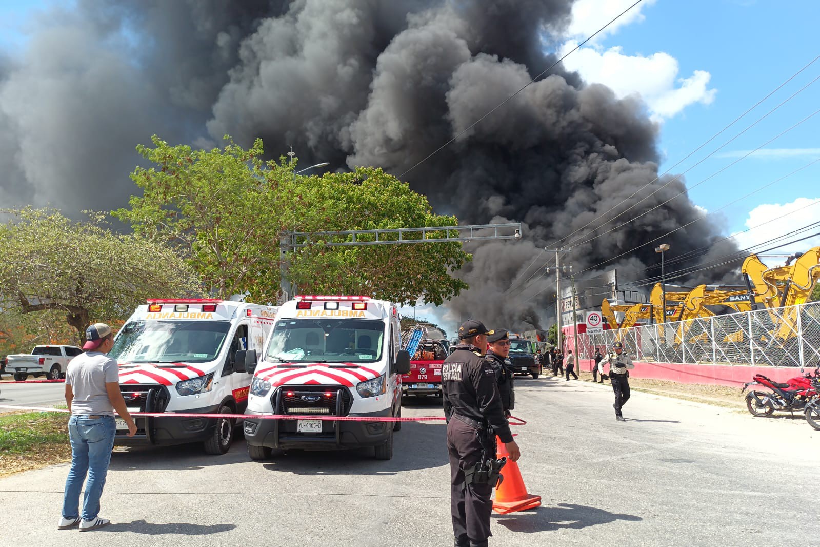 Al sitio ubicado a la altura del kilómetro 18 en la lateral exterior poco antes de subir el puente de la calle 59 en la empresa Fervab se originó un fuerte incendio que hizo presa de un camión, tres motos así como un auto, sin embargo elementos de la SSP ayudaron a rescatar varios vehículos que si no fuera por su intervención hubieran sido pasto de las llamas.