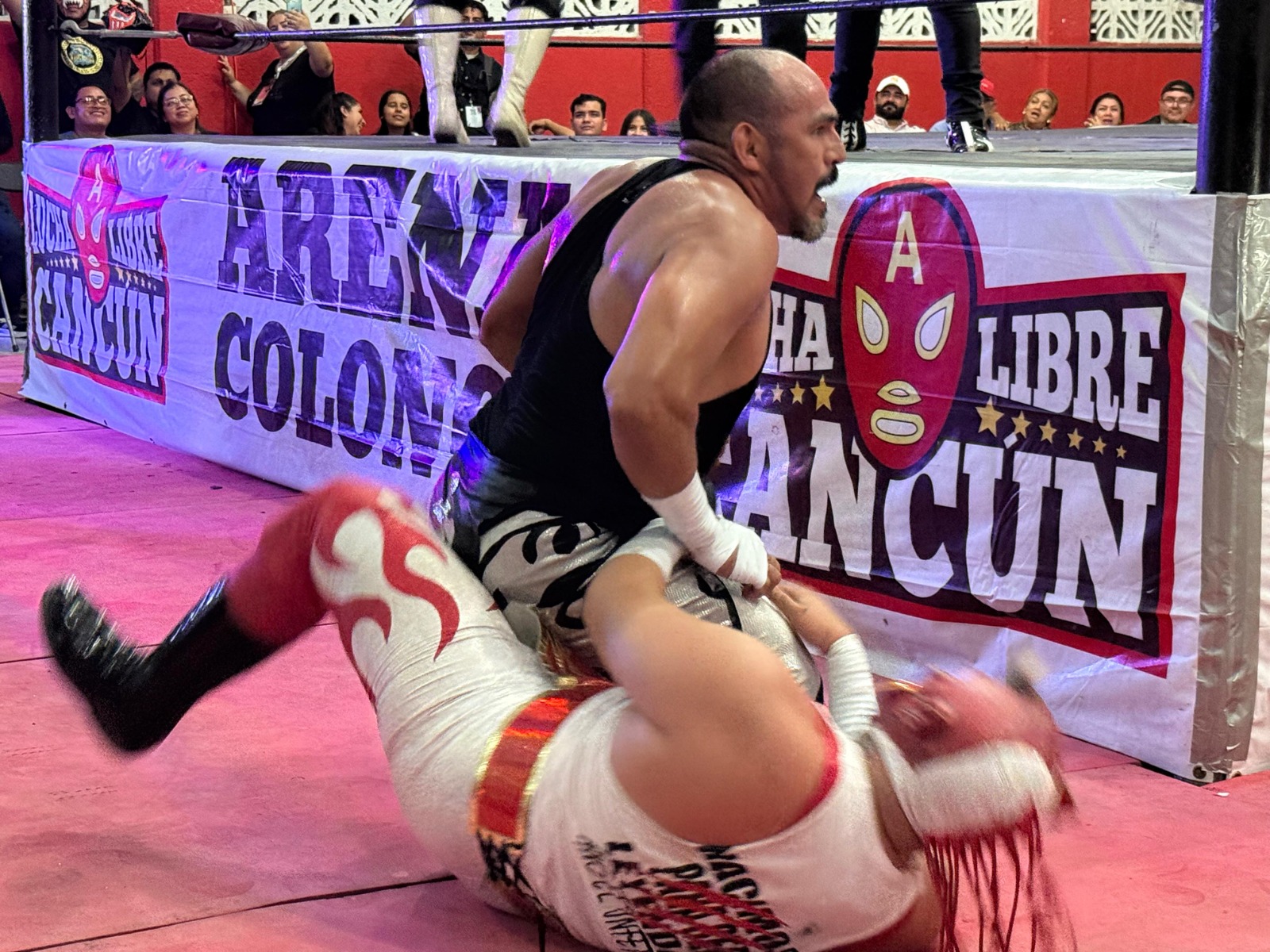 CANCÚN, Q. ROO a 26 de octubre.- La decencia sobre el cuadrilátero de la Arena “Colonos” quedó aún lado, en algo que poco le importó al público amante del pancracio, que una vez más abarrotó el inmueble de la SM 89, ya que ellos acudieron a ver un -Choque de Rudos-, y eso fue precisamente lo que encontraron en este cartel presentando por Lucha Libre Cancún (LLC), con lo que le pusieron fin a sus funciones correspondientes al mes de octubre.