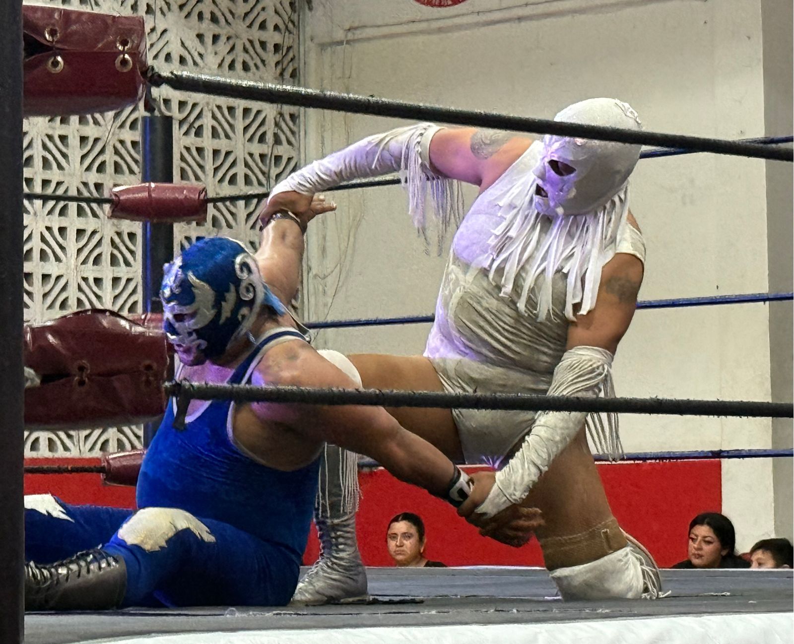 Pero uno de los grandes momentos de la noche llegó con la Batalla Semifinal, al hacer su presentación con LLC, El Pachuco y El Katrin, mismos que más allá de sus atuendos muy a tono con sus personajes, dejaron una grata impresión sobre la lona.