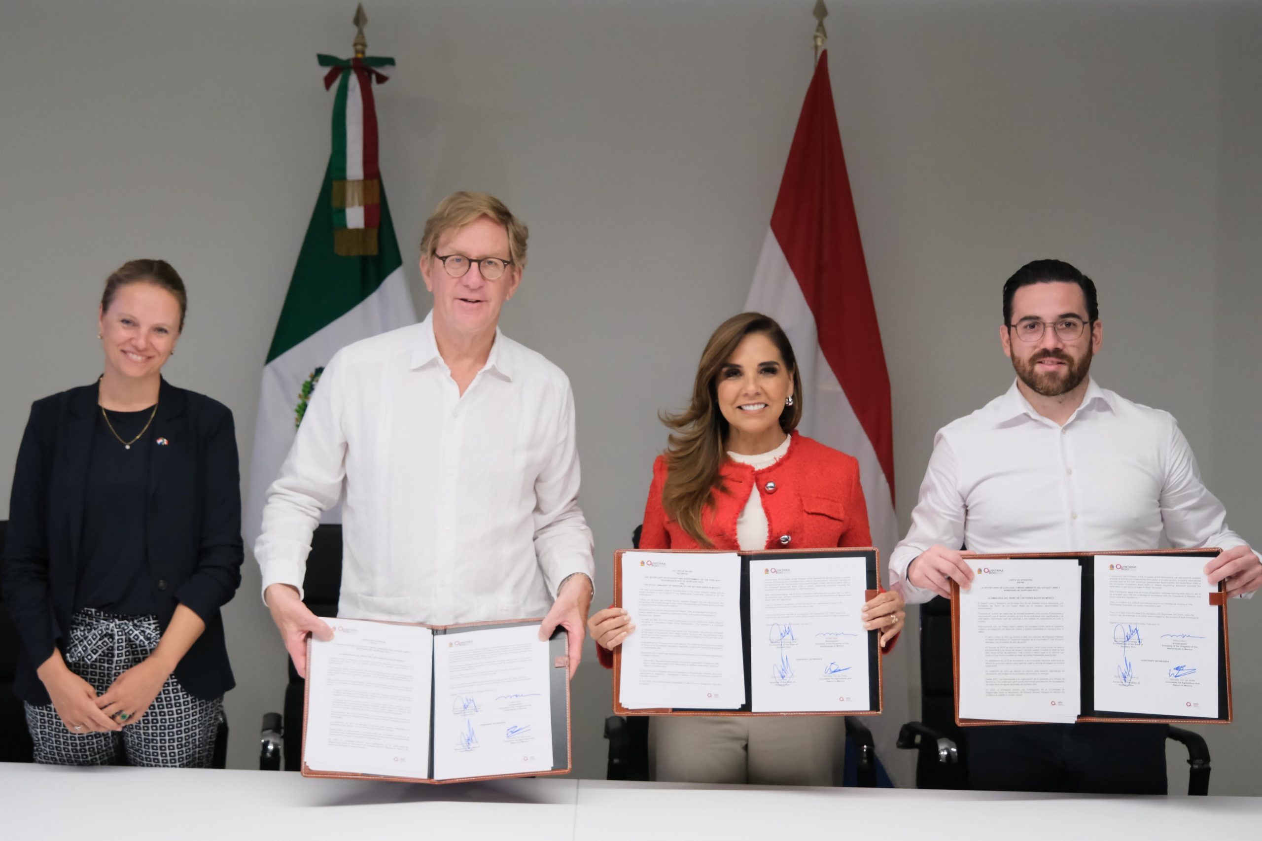 Cancún.– La gobernadora Mara Lezama Espinosa y el embajador del Reino de los Países Bajos, Wilfred Mohr, sostuvieron un encuentro de trabajo para fortalecer la cooperación internacional al firmar una Carta de Intención para implementar proyectos innovadores y sostenibles en materia ambiental en Quintana Roo.
