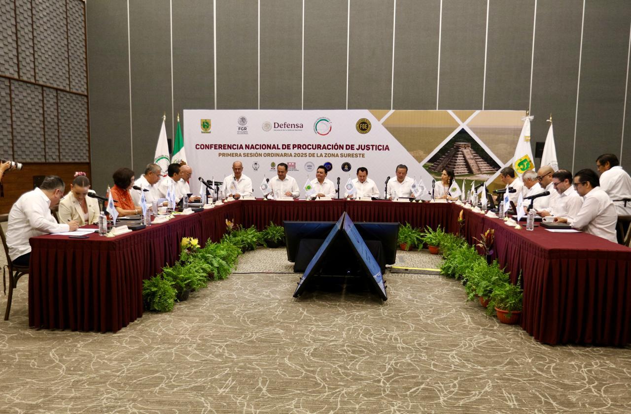 En el marco de la Primera Sesión Ordinaria 2025 de la Zona Sureste de la Conferencia Nacional de Procuración de Justicia (CNPJ), conformada por las personas titulares de las instituciones de procuración de justicia de Campeche, Chiapas, Guerrero, Oaxaca, Quintana Roo, Tabasco, Veracruz y Yucatán, se atendieron temas de interés nacional como las propuestas de reformas a la Constitución Federal, al Código Nacional de Procedimientos Penales, y a la Ley de Amparo, que fueron avaladas y seguirán el procedimiento ante la Mesa de Seguimiento de la Consejería Jurídica del Ejecutivo Federal, para su presentación al Congreso de la Unión.