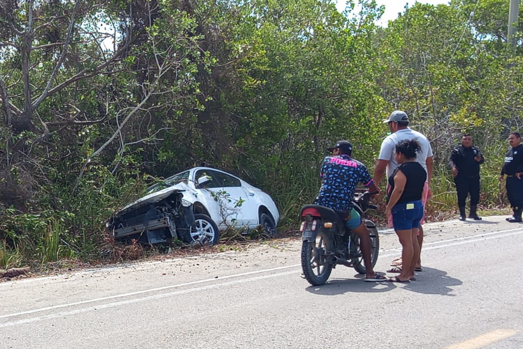 Los hechos ocurrieron la mañana de hoy jueves, cuando la conductora del Versa dormito frente al volante y perdió el control del automóvil saliendo de la carretera y frenando su peligrosa carrera en la vegetación del mangle. Afortunadamente sin lesiones graves que lamentar y solo daños materiales. Se exhorta a todos los conductores en estás vacaciones a no manejar cansado y evitar ponerse en riesgo y a sus familias.