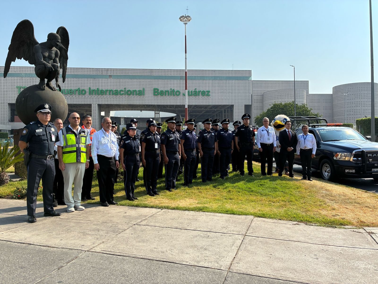 El Aeropuerto Internacional de la Ciudad de México (AICM) informó este jueves que personal del Servicio de Protección Federal (SPF) inició de labores para brindar protección y vigilancia en la zona federal que comprende la terminal (como la vialidad, los ambulatorios, las salas de última espera, entre otras áreas). “¡Reforzamos la seguridad en el AICM! Con el banderazo de inicio del Servicio de Protección Federal garantizamos mayor protección en zonas clave del aeropuerto”, informó en Facebook el AICM, bajo la administración de la Secretaría de Marina.
