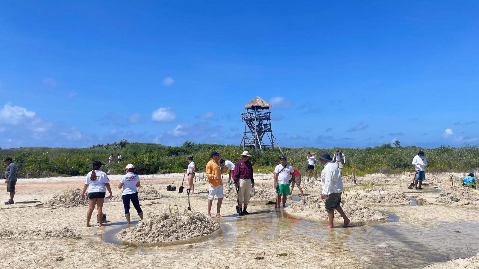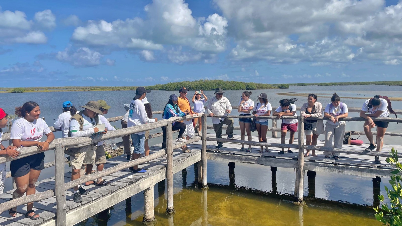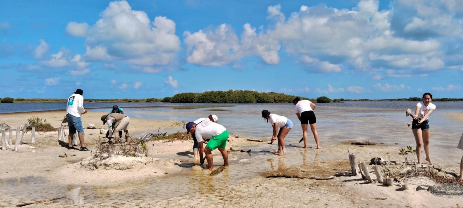Posteriormente, las y los participantes se trasladaron a la laguna X’tacún, donde realizaron labores de restauración del ecosistema de manglar con el acompañamiento del personal de Punta Sur.