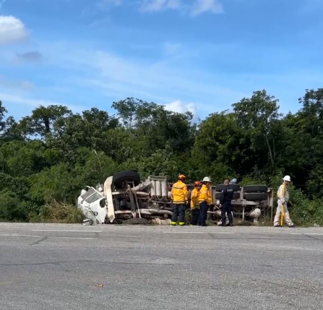 El percance ocurrió este mediodía cuando la pesada unidad circulaba en dirección norte a sur sobre la carretera federal 307, pero justo a la altura del kilómetro 276, este pierde el control del pesado vehículo, mismo que se salió de la carretera, quedando recostado entre la maleza.