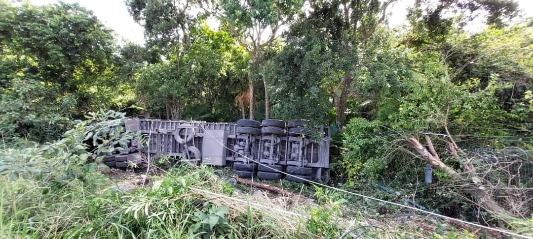 El percance ocurrió aproximadamente a las 10:00 horas cuando el operador de la pesada unidad circulaba en dirección al norte sobre el tramo Tulum-Playa del Carmen, pero justo a la altura de Xpuha, este pierde el control y termina saliendo se de la carretera hasta internarse varios metros entre la maleza.