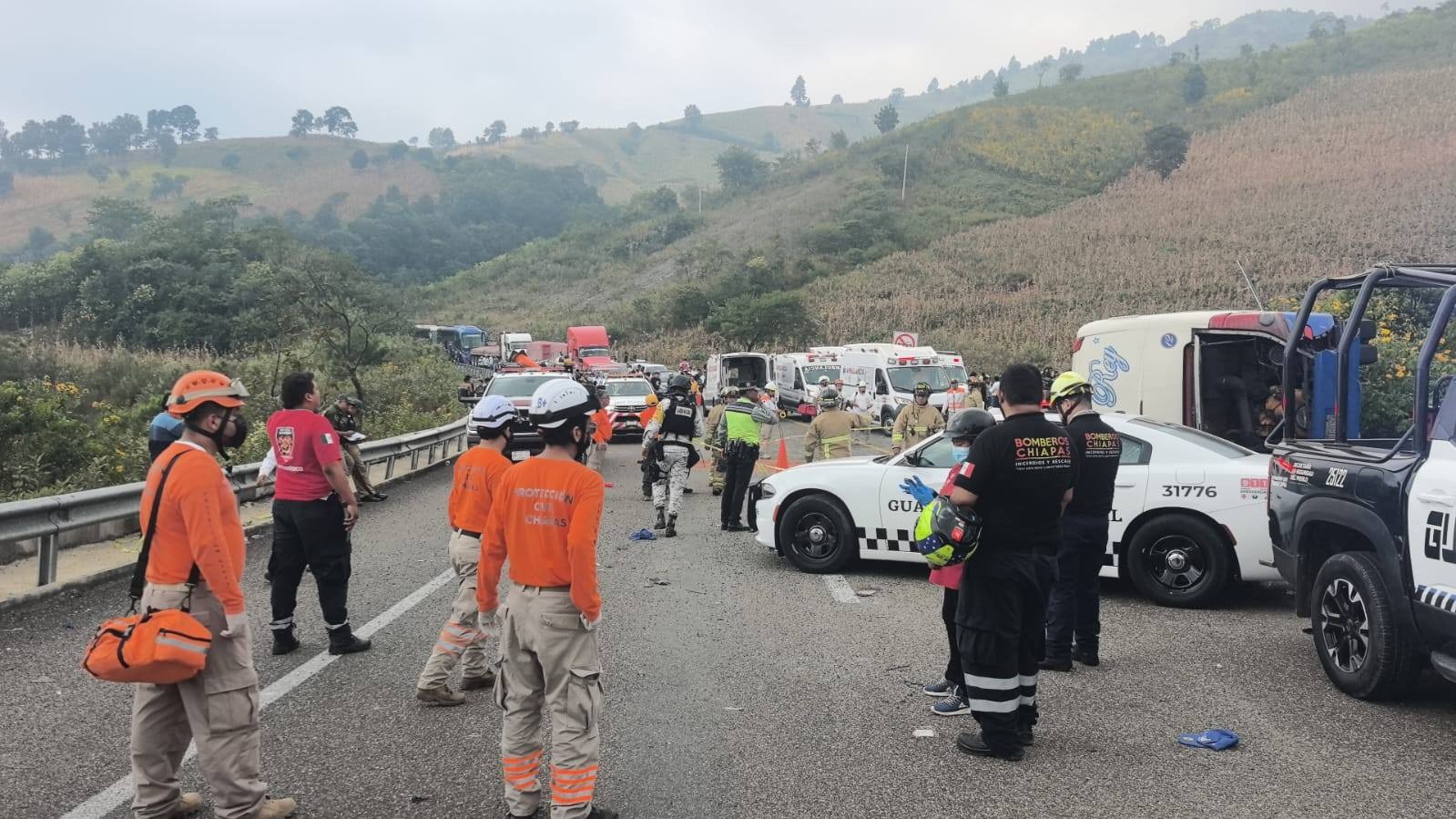 Al menos dos muertos y 22 heridos fue el saldo que dejó una volcadura de un autobús que trasladaba a un grupo de personas indígenas mayas tzotzil y tzeltal, en la autopista de San Cristóbal de las Casas, en Chiapas, informó Protección Civil.