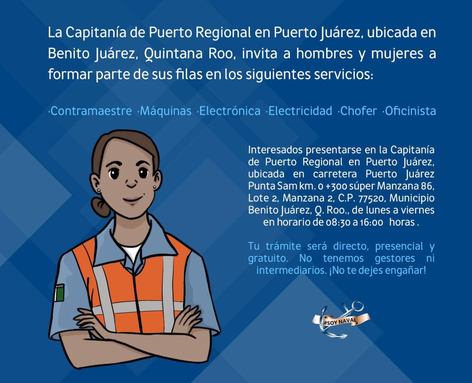 Para mayor información comunicarse a los números: 998 880 1360, 998 3133649 o al correo electrónico: cp.ptojuarez@semar.gob.mx