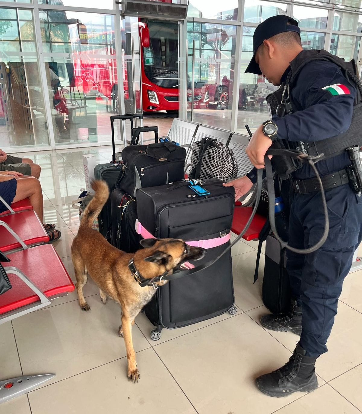 Esta mañana, elementos de la Unidad Canina K9 de la Secretaría de Seguridad Ciudadana, en compañía de los elementos caninos “Thor” y “Yoker” realizaron un operativo en la Terminal de Autobuses ADO en Playa del Carmen; en donde se inspeccionaron a 65 personas y 02 autobuses.