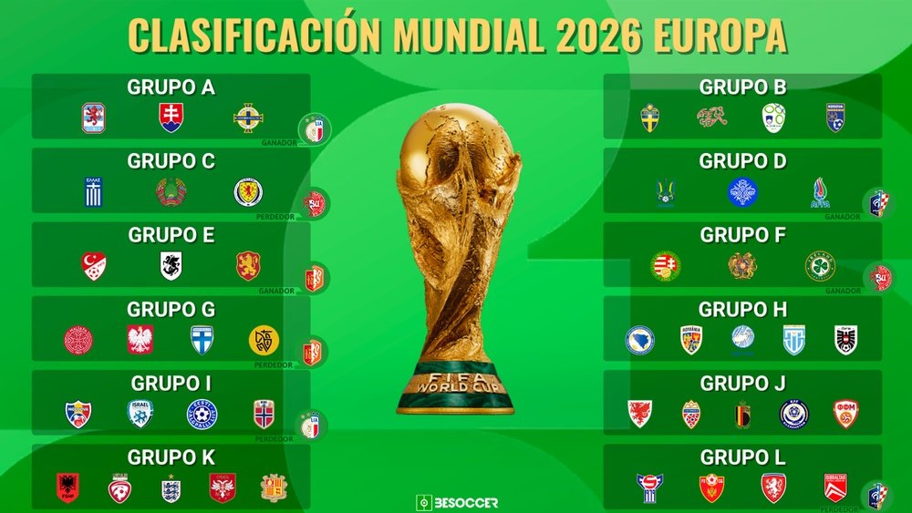 - Grupo L: Perdedor Francia/Croacia, República Checa, Montenegro, Islas Feroe y Gibraltar