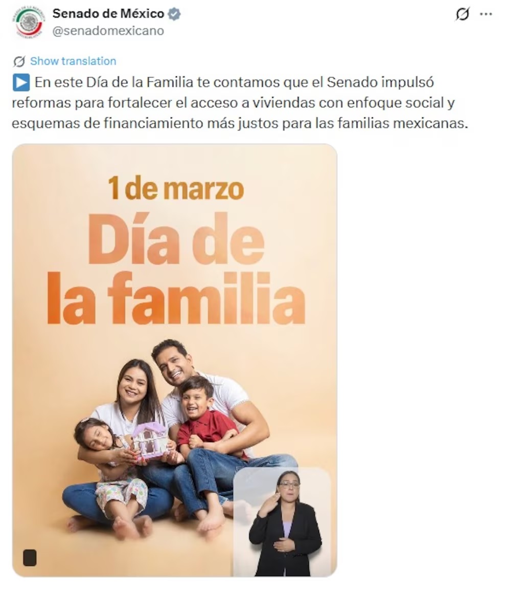 Desde sus redes sociales, el Senado destacó que el derecho a la vivienda es un componente clave del bienestar familiar. Por ello, el Senado ha trabajado en reformas legales orientadas a facilitar el acceso a viviendas, especialmente para sectores vulnerables, jóvenes y personas trabajadoras que enfrentan barreras de financiamiento. Estas acciones buscan modernizar esquemas de crédito, promover vivienda social y reforzar la coordinación entre instituciones federales y estatales.