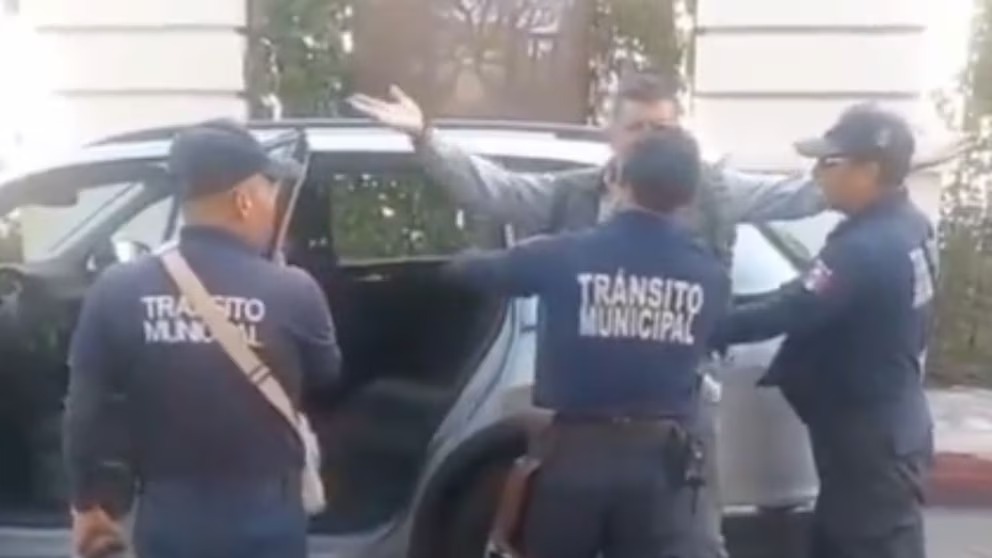 El incidente quedó registrado en un video difundido en redes sociales, donde se observa a tres agentes de Tránsito Municipal quienes intervienen