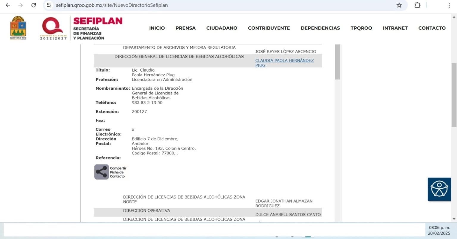 CANCÚN, QUINTANA ROO, 21 de Febrero de 2025.- La Secretaría Finanzas y Planeación de Quintana Roo (Sefiplan) informó en sus redes sociales el cambio de titular en la Dirección General de Bebidas Alcohólicas, luego de que se señalara a Vicente de Jesús Franco Reyes como presunto responsable de una serie de abusos, intimidación y agresiones en contra de su exesposa.