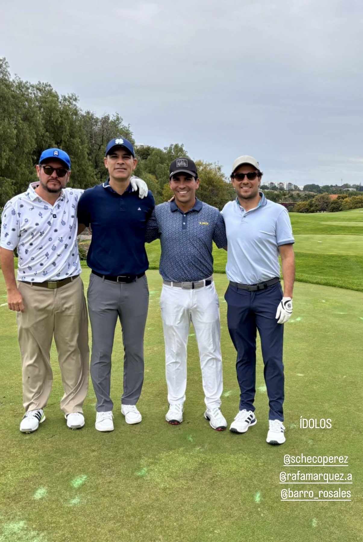 Sergio Pérez y Rafael Márquez aprovecharon parte de su tiempo libre para coincidir y disfrutar juntos en un campo de golf, junto al hermano de Checo, Antonio, y un amigo en común. Fue ‘Toño’ Pérez quien publicó una foto de los cuatro sobre el green, con sus atuendos para practicar dicho deporte. Se desconoce en dónde se reunieron para jugar, pero en la imagen se les vio contentos tras el rato de esparcimiento.