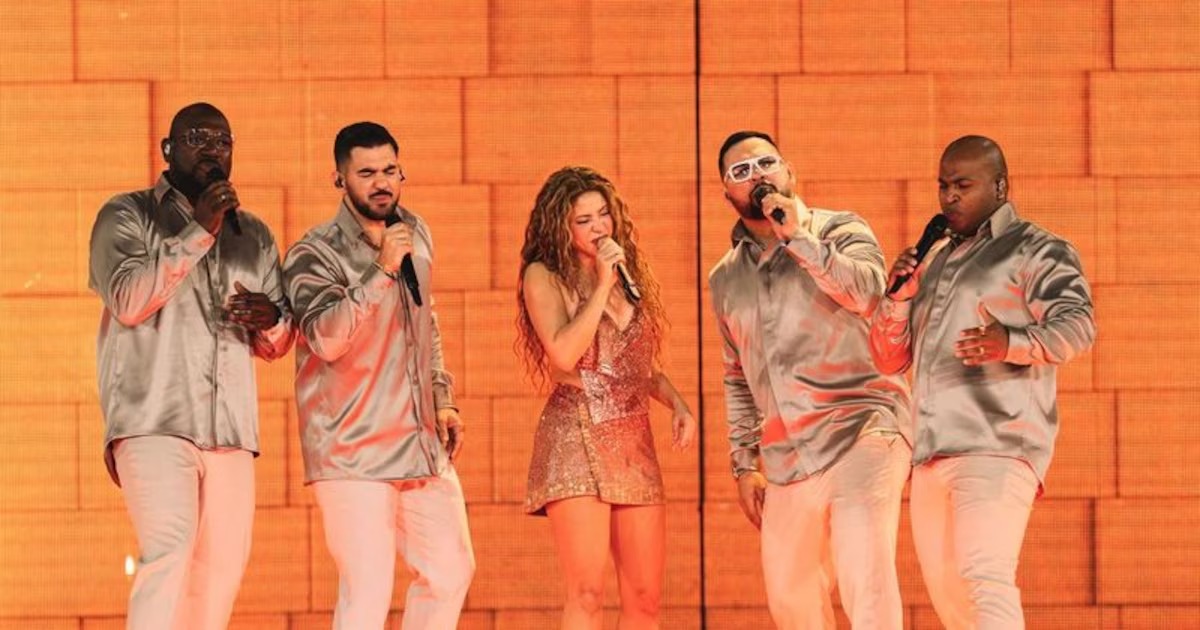 • El emotivo momento llegó cuando Shakira invitó al escenario al legendario Grupo Niche para interpretar juntos el clásico “Sin Sentimiento”