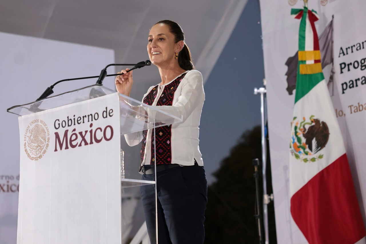 En Huimanguillo, Tabasco, donde puso la primera piedra del Programa Nacional de Vivienda, la mandataria nacional dijo que esa entidad es donde nació el movimiento de la Cuarta Transformación (4T).