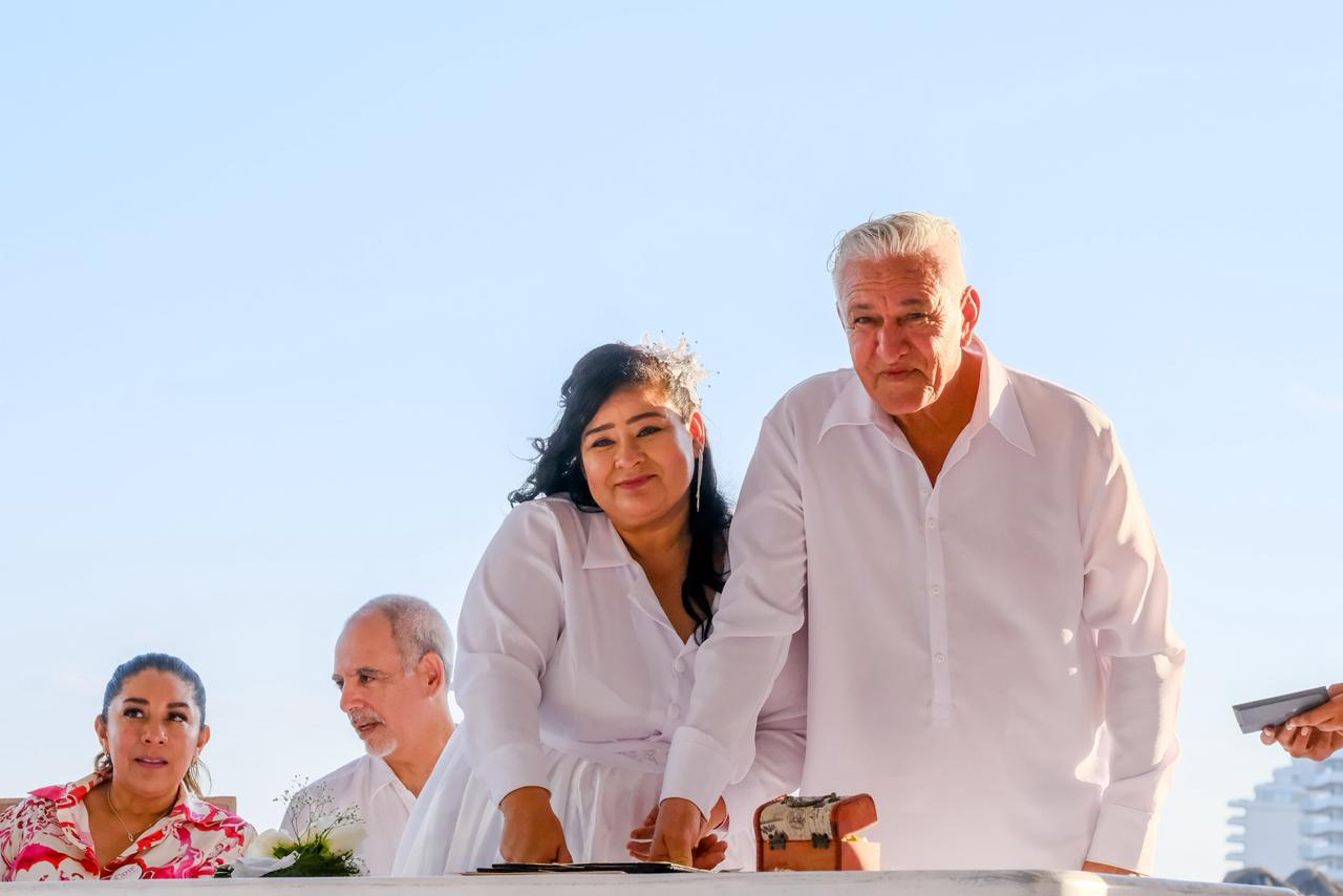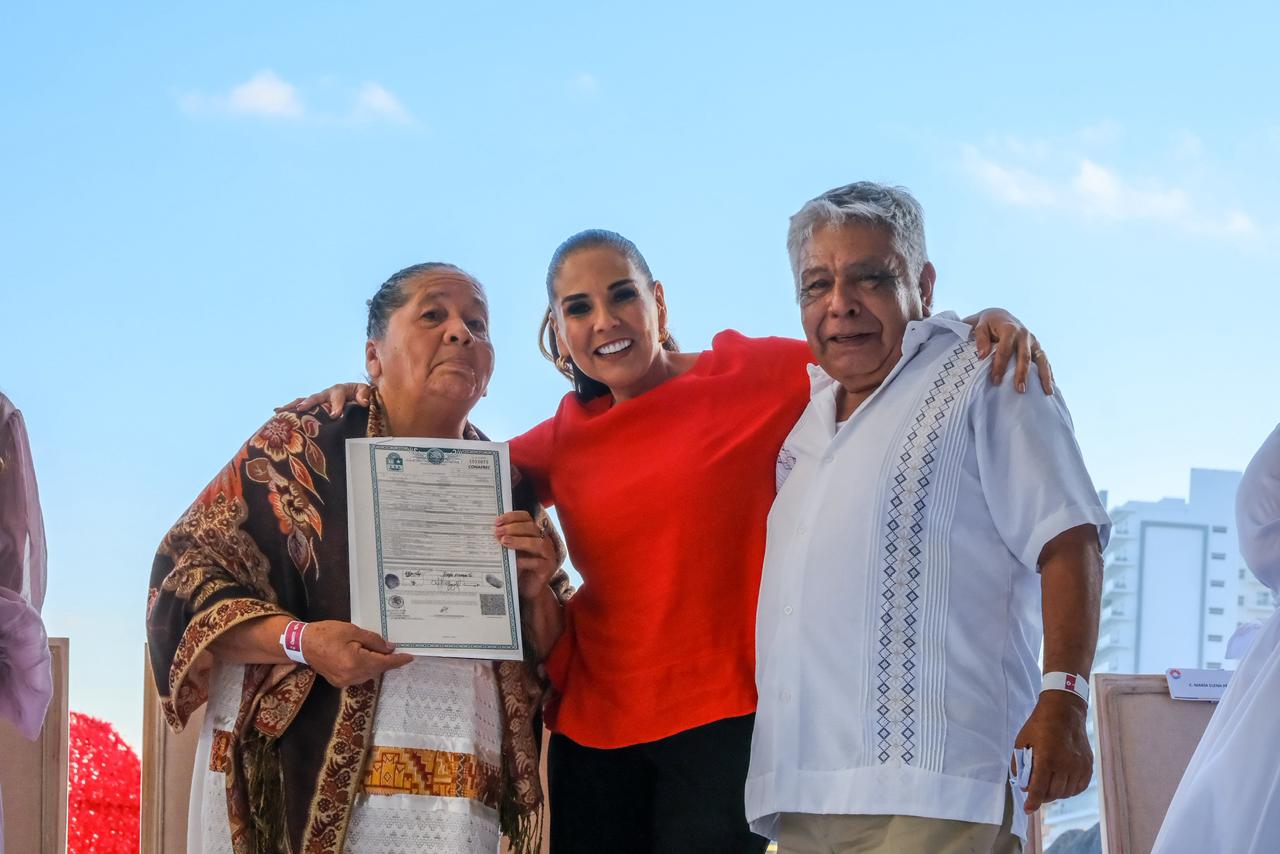 • La gobernadora Mara Lezama atestigua la ceremonia en Cancún, en la que participaron 14 parejas igualitarias, una pareja con discapacidad auditiva y destaca unión de adultos mayores con 56 años juntos.