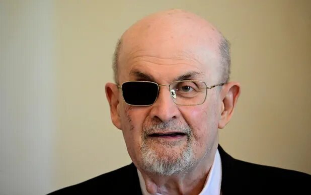 Con las huellas de las heridas consecuencia del ataque que sufrió el 12 de agosto de 2022, en el que casi pierde la vida, el autor respondió cada una de las preguntas sorprendido por la convocatoria, rodeado por sus libros y con sus característicos lentes con un vidrio oscuro que oculta la pérdida del ojo derecho tras el atentado.