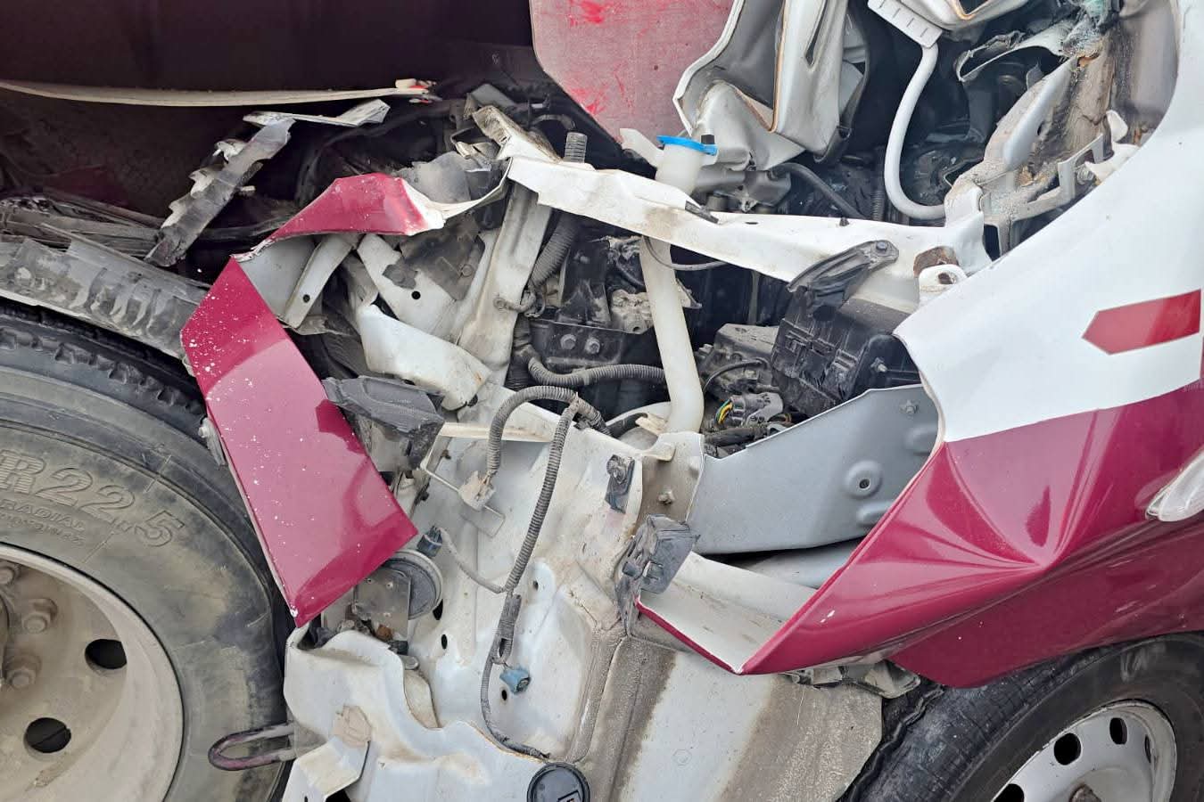 Escárcega, Cam., 17 de febrero.- Una combi de la Cooperativa Centenario de la ruta Escárcega-Campeche con número económico 7020, se impactó contra un camión de volteo color rojo con número económico 109, el conductor sin la debida precaución intentó pretornar para ingresar a una quebradora, originando el accidente.
