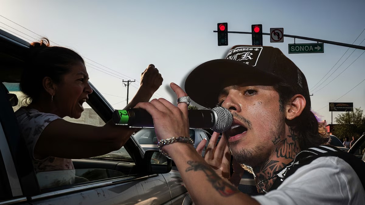 “Uno no puede estar en un semáforo parado, por lo menos acá en Sonora (…) la gente quiere que uno esté como pendej* atrás de ellos. ‘Oye, m’ija, ábrase a la verg*, traigo prisa’, no puedo estar parado; ‘fu, fu’, vámonos, pa’, y se enmulan. ‘Pinche naco pendjo, tú eres el de los corridos’, y yo (respondo): ‘Sí, a la verg, y me pela la verg*’“, dijo.