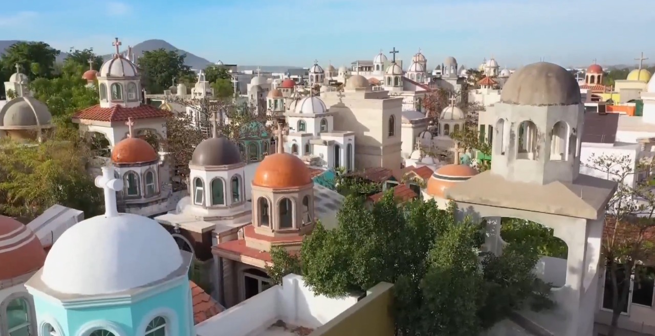 La crónica de La Huella termina en un lugar insólito: el panteón Jardines del Humaya en Culiacán, conocido como el “panteón de los narcos”. Lejos de las sencillas tumbas populares, aquí se levantan mausoleos de varios pisos con mármol importado, vitrales, sistemas de aire acondicionado, Wi‑Fi, televisión satelital, salones de fiesta, cocinas y dormitorios. Muchas familias instalan cámaras de vigilancia, ventanas blindadas y hasta sistemas de sonido para escuchar música de banda las 24 horas.