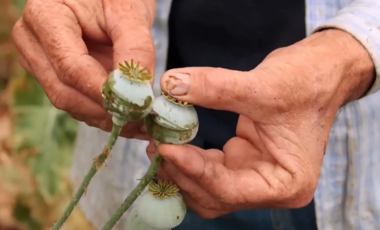 “De aquí vivimos todos”, confiesa mientras raspa las cápsulas con precisión, consciente de que ese líquido marrón viscoso terminará cruzando la frontera convertido en muerte y dinero.