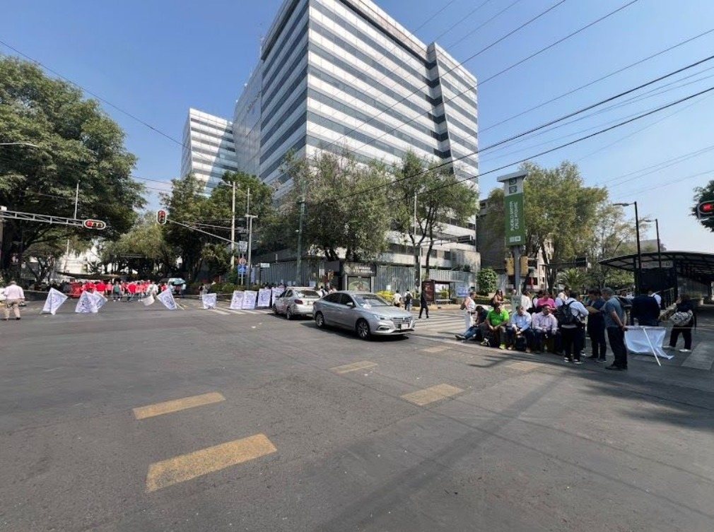 Los trabajadores realizaron una marcha desde la avenida División del Norte hasta Municipio Libre y avenida Cuauhtémoc, lugar donde se mantiene el bloqueo y cerrado al tránsito vial
