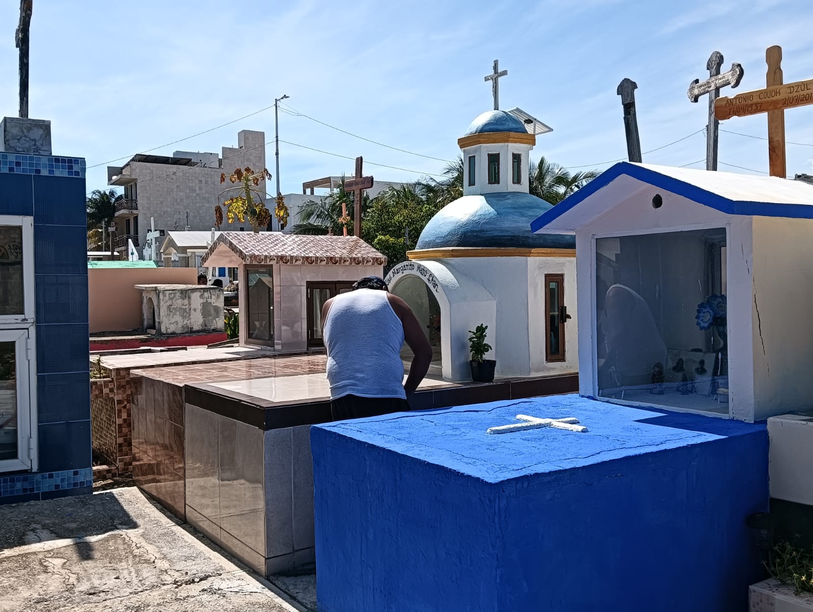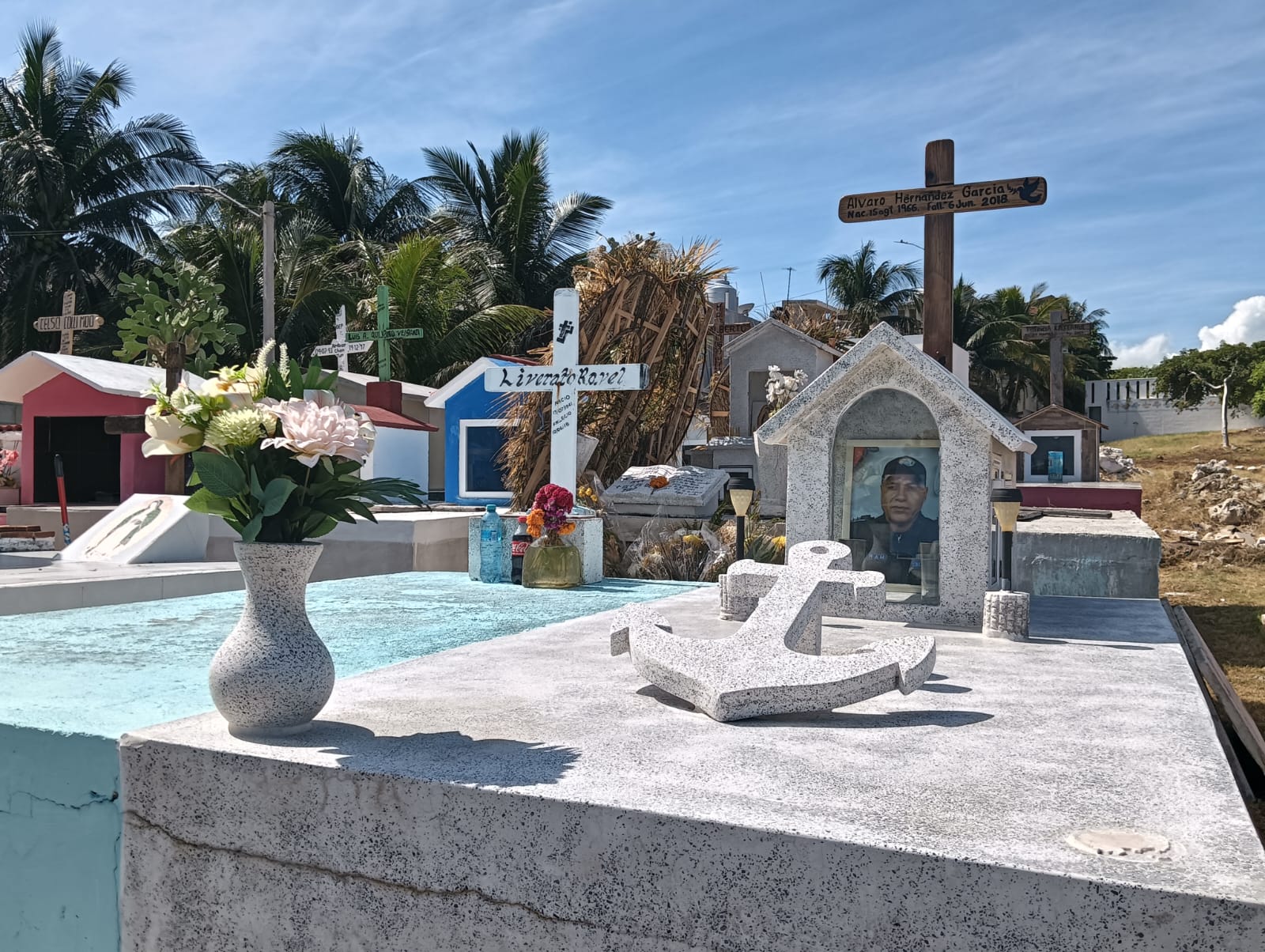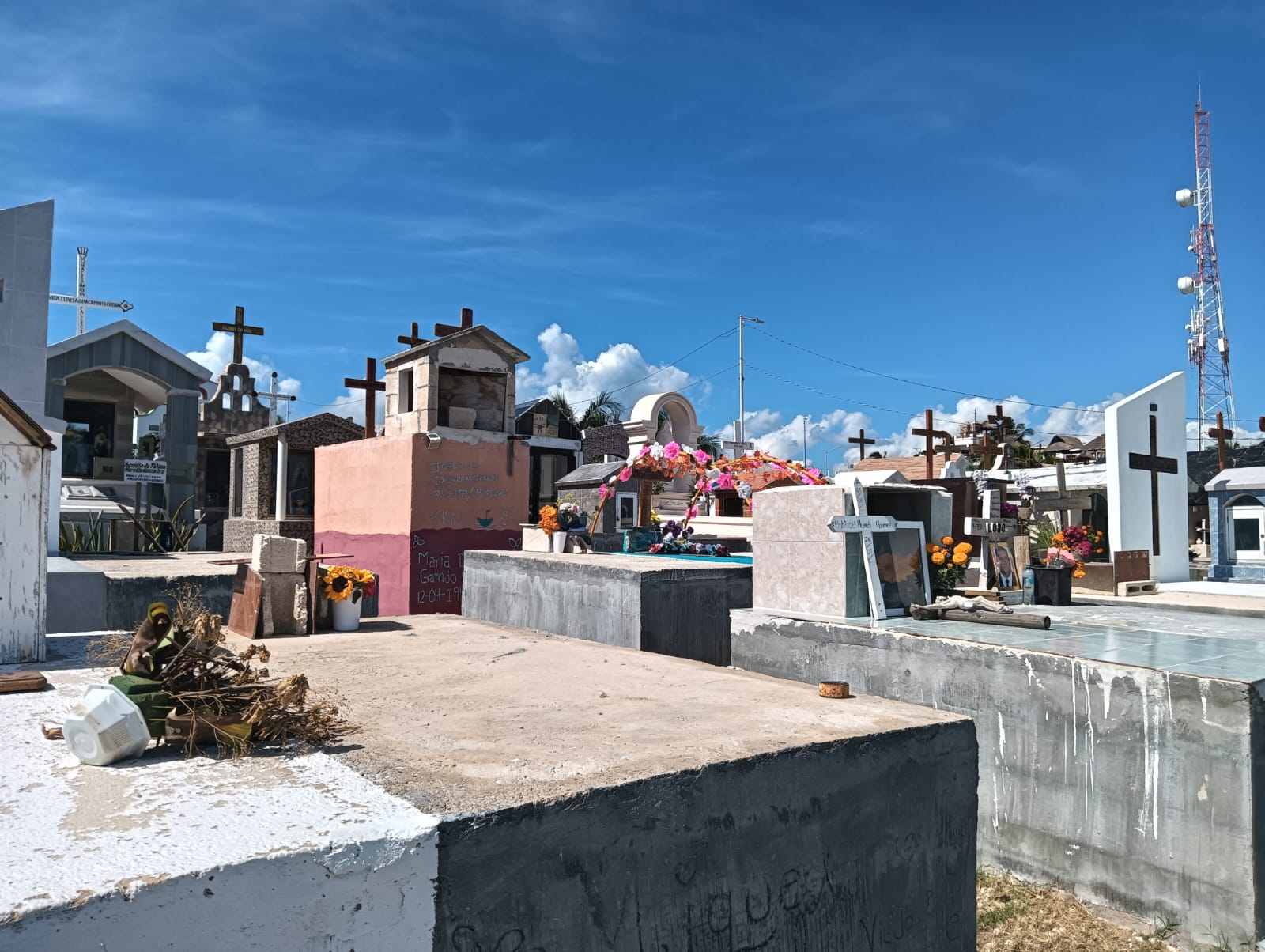 Isla Mujeres, 2 de noviembre.- El Día de los Fieles Difuntos se vive con un ambiente soleado en Isla Mujeres, donde las familias acudieron a los dos cementerios municipales para honrar la memoria de sus seres queridos. Los panteones del centro y de la colonia La Gloria registraron una notable afluencia de personas durante toda la jornada.