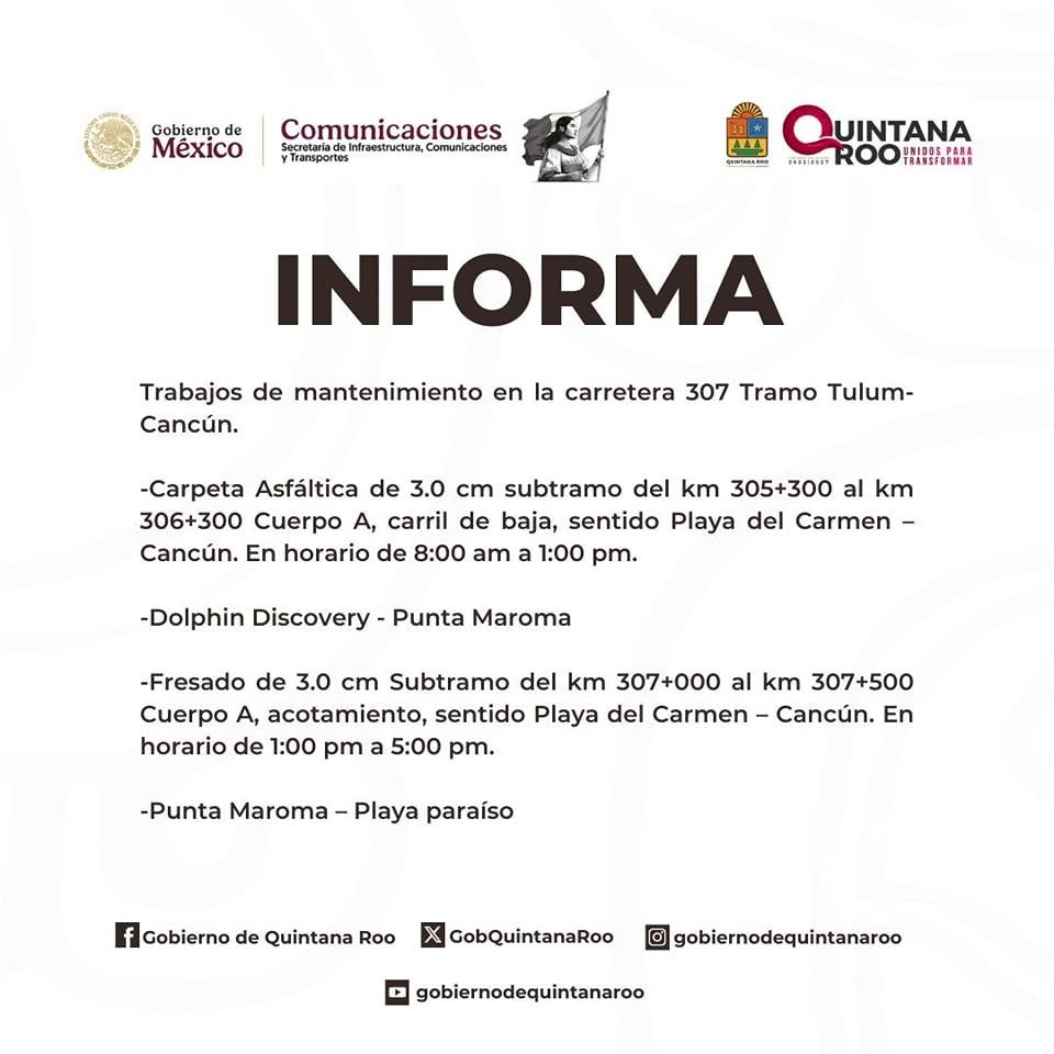 Lo anterior, para solicitar que las obras de reparación de la Carretera Federal 307, una de las principales vías turísticas del país, se realicen durante la noche para mitigar los severos problemas de congestión vial que actualmente afectan a miles de automovilistas y turistas.