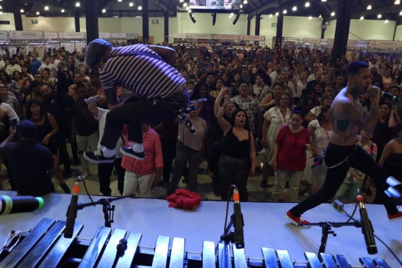 Mérida, Yucatán, a 19 de octubre.- El Encuentro de Arte Textil Mexicano resonó con los ritmos de marimba, punk, ska y rockabilly de la banda de Naucalpan, enmarcando una celebración del arte popular y resistencia comunitaria que reunió a más de 13 mil personas en su tercer día.